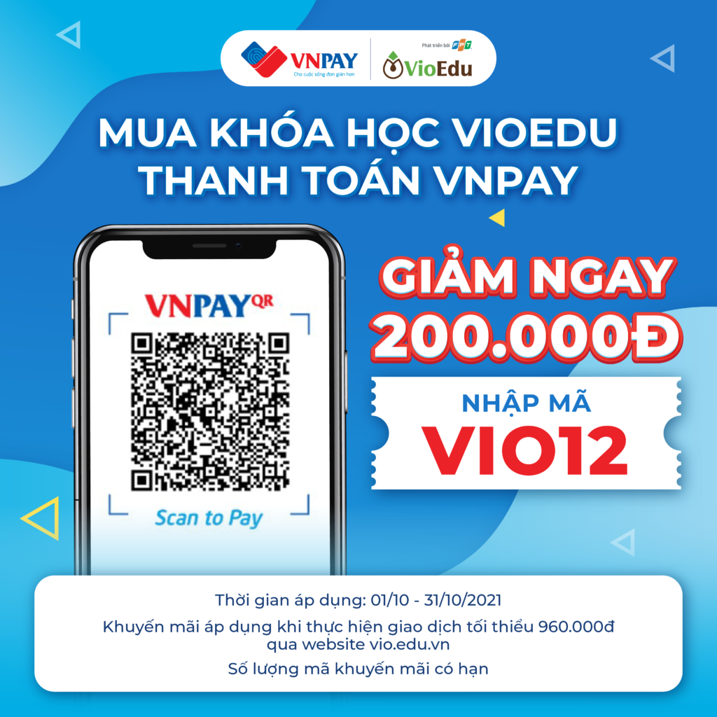 Lưu ý: Để được áp dụng giảm giá với ưu đãi từ ShopeePay, anh chị và các bạn nhớ mua qua website Vio.edu.vn và chọn hình thức thanh toán khóa học là Ví ShopeePay và nhập mã SPPVIOSEU nhé.