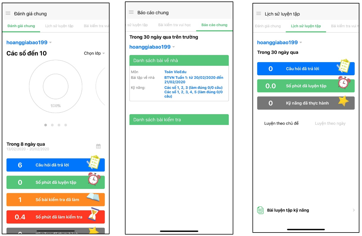 Tại đây phụ huynh có thể xem toàn bộ báo cáo, đánh giá, nhận xét chi tiết của con bao gồm các thông tin như bên dưới: