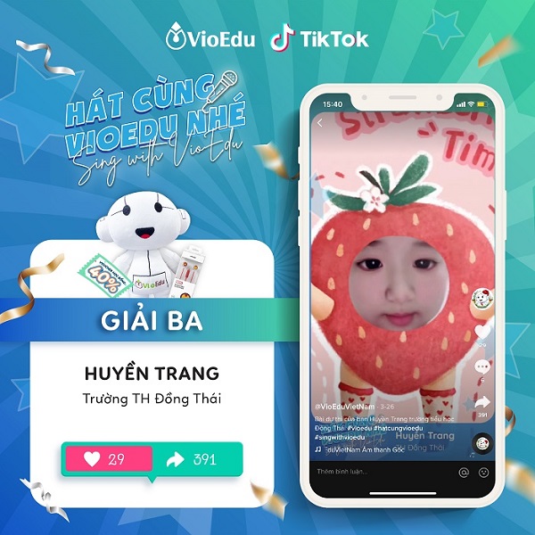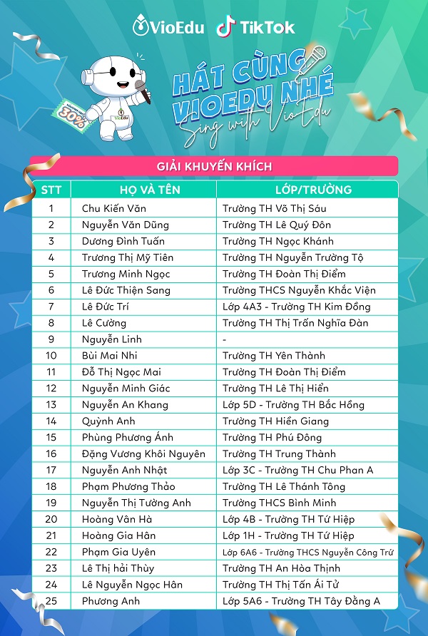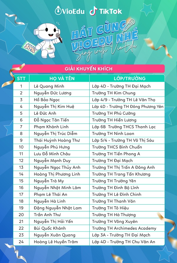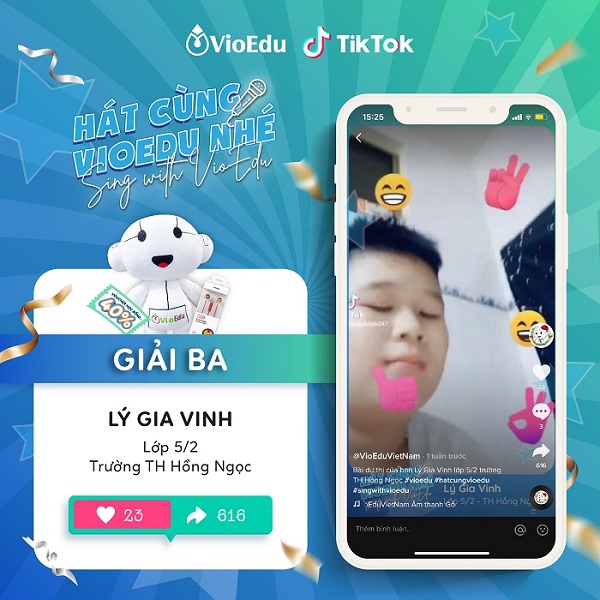 Hôm nay (8/4) BTC công bố danh sách các bạn học sinh đạt giải các hạng mục từ sự kiện thi hát Hát cùng VioEdu – Sing with VioEdu.