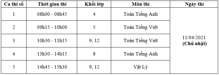 – Thời gian chi tiết bắt đầu mỗi ca thi của từng môn thi sẽ do các giáo viên các đơn vị thông báo cho học sinh của mình.